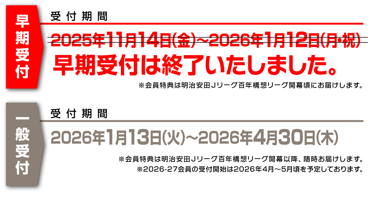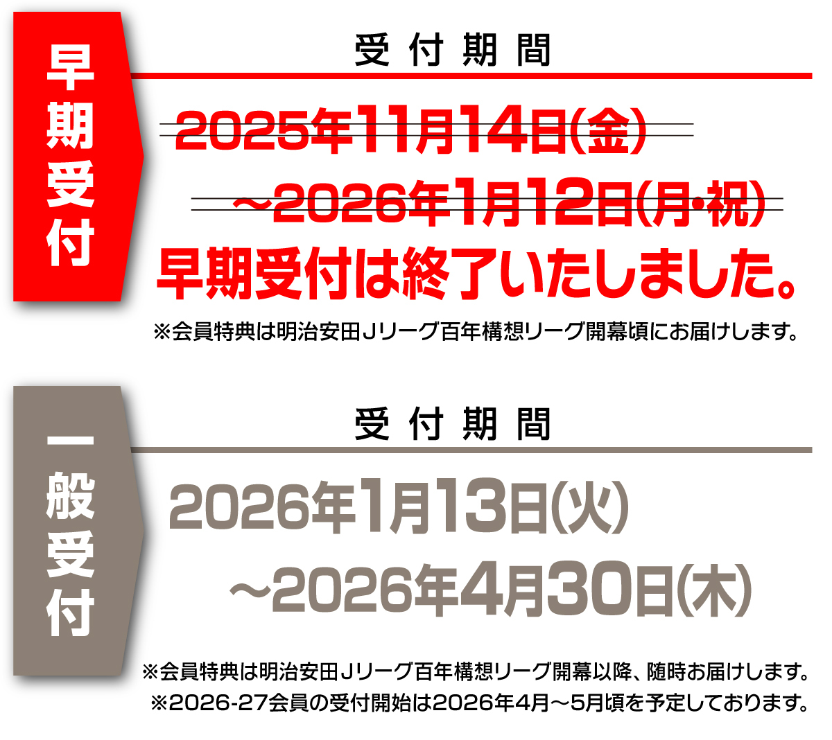 明治安田Jリーグ百年構想リーグと2026/27シーズンを含む1.5年分の会員受付を行います。