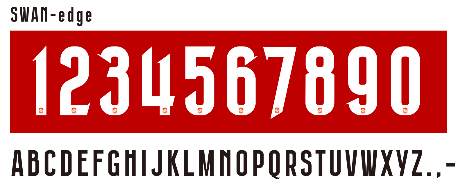 ネーム&ナンバーは、2025シーズンに続きオリジナルフォント「SWAN-edge」を採用。クラブの象徴である白鳥をモチーフにしたフォントは、優美なフォルムと鋭さを同時に表現。ナンバーにはクラブエンブレムがプリントされ、オフィシャルの重厚感を加えています。