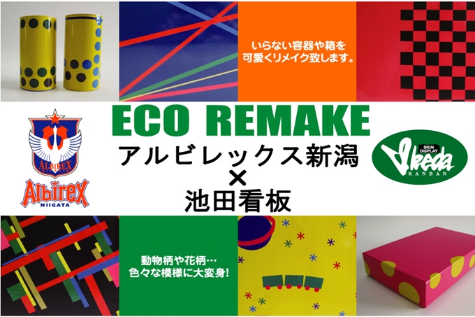「ECOリメイク」とは、試合会場で出る飲み終わったペットボトル、段ボールの芯などを再利用し、鉛筆入れや小物入れなどにかわいくリメイクするエコ活動です。