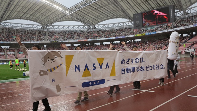 10月26日(日)に開催されたヴィッセル神戸戦で、ナスバ 独立行政法人自動車事故対策機構(NASVA)と自動車事故対策の啓発活動を行いました。ナスバは、自動車事故対策の専門機関として、自動車事故被害者を「支える」、自動車事故を「防ぐ」、自動車事故から「守る」という3つの業務を一体的に実施しています。