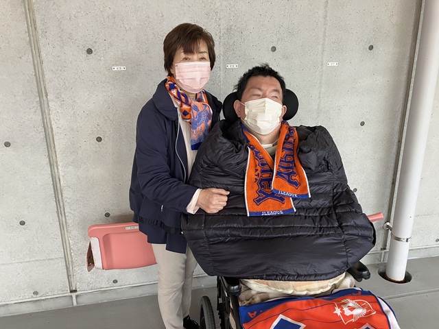 「暑いと体力的に難しいので、暑さが落ち着いてからが良いです」とホームゲーム観戦は、昨年10月に実施したご招待以来とのこと。普段は、お住まいの地域で開催されるイベントでの外出が多いそうで、「車に乗せるには、誰かに傍にいてもらわないといけませんし、私一人で連れて来ることができるわけではありません」とヘルパーの方の力をお借りして、1年ぶりのホームゲームを楽しみにされていました。