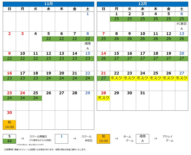 ★[11・12月]スクール開催スケジュール