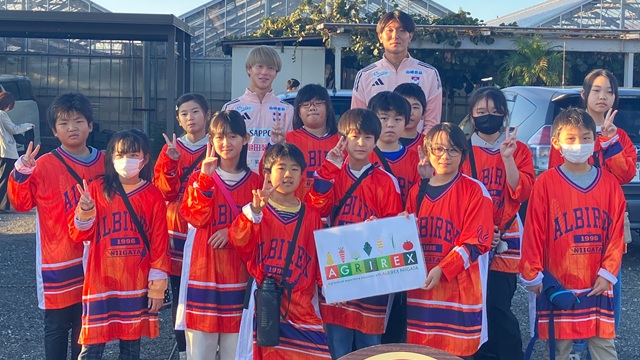 農業体験を児童・生徒ならびにアルビレックス新潟の選手の人材育成に活かし、地域への理解を深め、愛着心を育むことを目的とした「AGRIREX(アグリレックス)」。今年は、アルビレックス新潟後援会の会員様と協働で活動したり、ホームゲームで栽培・収穫したル レクチエを加工したかき氷とドリンクを販売したり、活動を発展させることができました。