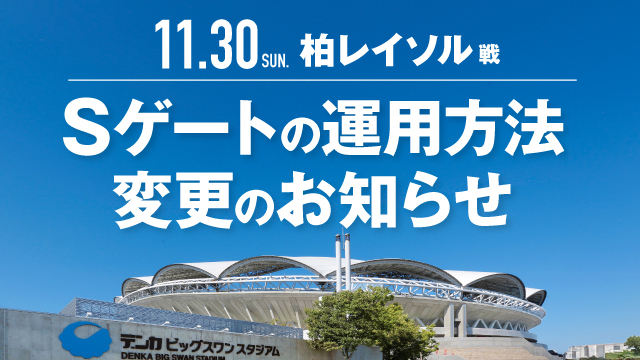 【11月30日(日)柏戦】Sゲートの運用方法ならびに席割変更のお知らせ