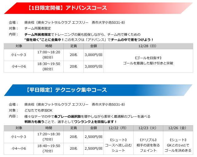 今年の冬休みは『冬スク・県央』でレベルアップを図り、ワンランク上のサッカー選手を目指しましょう!