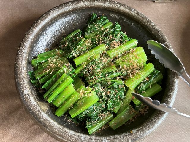 さらに、有機栽培の新鮮な篠崎さんの有機栽培小松菜は、栄養満点のおひたしとして提供されました。