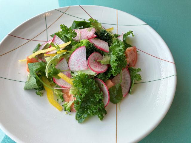生でも甘く美味しい赤こかぶを使った、彩り鮮やかなサラダ。選手たちもモリモリ食べていました!