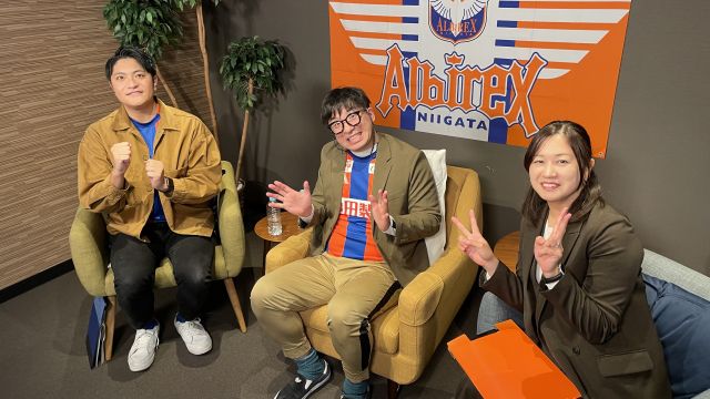 番組MCの出来心オダニさん、アルビレックス新潟の番記者野本桂子さん、スタジアムMCの森下英矢さんとともに、前後編で今シーズンを語らいます。
