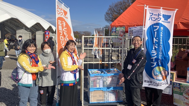 当クラブでは、“ニイガタガミカタ”プロジェクトとして、ホームゲーム会場ならびに道の駅たがみ(田上町)で「フードドライブ(家庭や企業で余裕のある食料品を集め、福祉施設や団体に寄付する活動)」を実施しています。