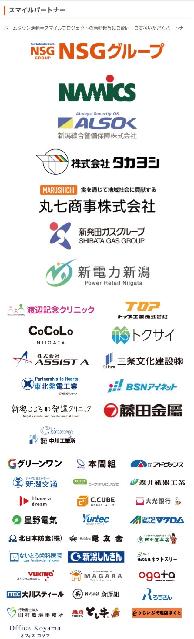 アルビレックス新潟では、たくさんの笑顔に貢献するアクションとして、ホームタウン活動を「スマイルプロジェクト」と定義し、笑顔あふれる街づくりに取り組んでまいります。