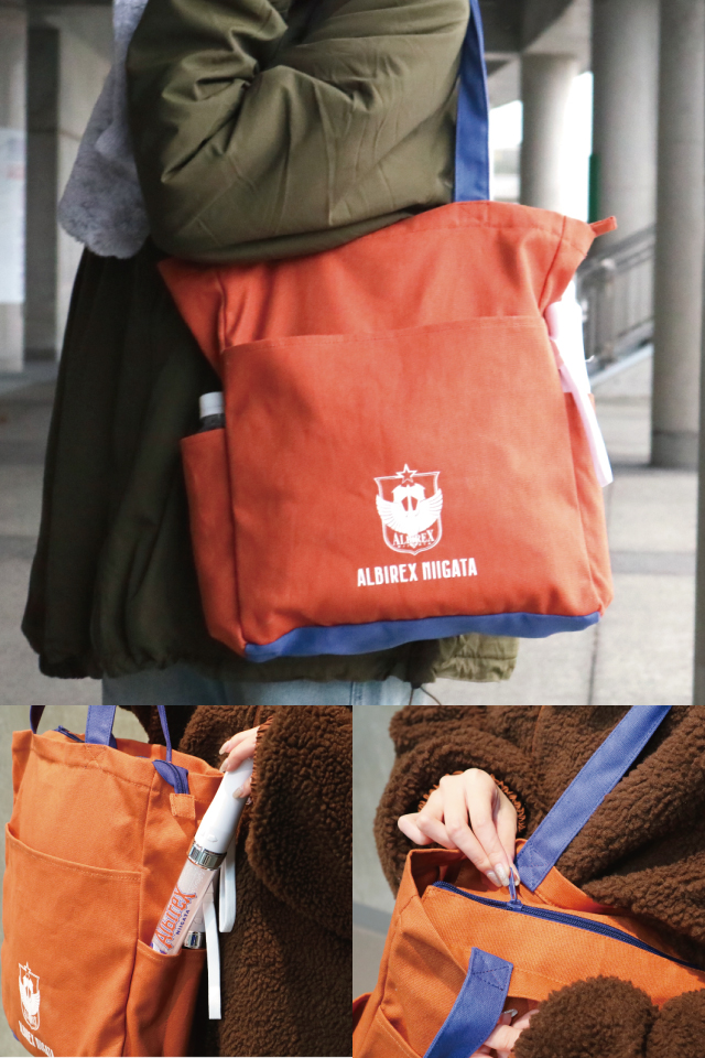 これさえあれば、応援準備は万全!必要なアイテムをまとめて収納できるトートバッグ。豊富なポケットが付いているので、ウェアやタオル、プラネタスワンなど、かさばりがちな応援グッズも整頓して持ち運びできます。