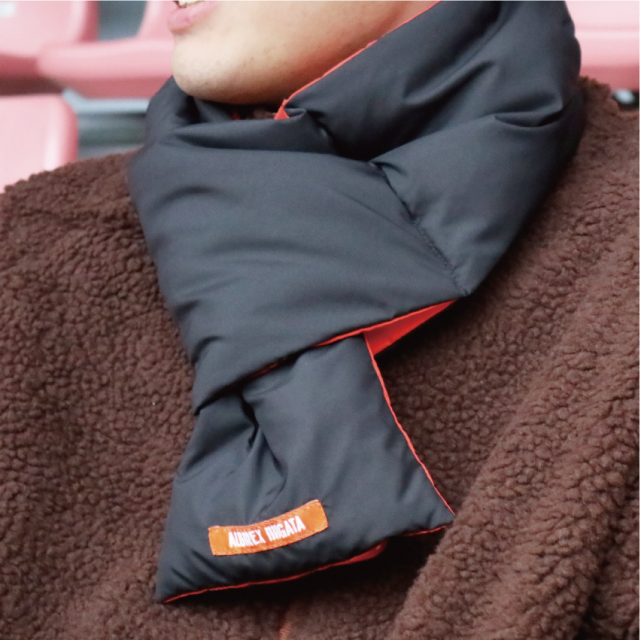 暖かさが持続する、高機能マフラー。体温をしっかりキープし、寒い季節の首元を快適に守ります。ブラックにオレンジをアクセントにした洗練されたデザインは、スタジアム観戦からビジネスシーンまでTPOを選ばず幅広く活躍するアイテムです。