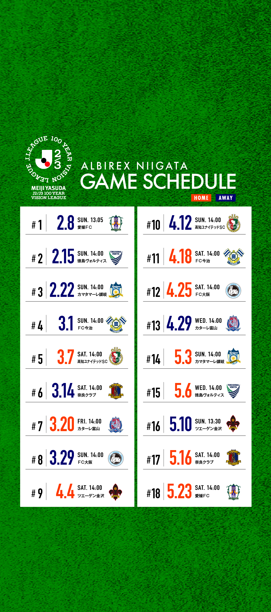 明治安田J2・J3百年構想リーグ WEST-Aグループ 第16節 試合日程決定のお知らせ