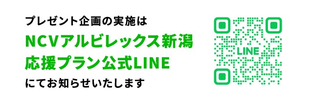 ※プレゼント企画・応募等の詳細は「NCVアルビレックス新潟応援プラン公式LINE」でお知らせいたします。この機会にぜひご登録ください。