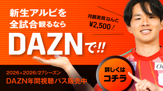 【ご自宅観戦がアルビの力に! DAZN年間視聴パス販売中!】