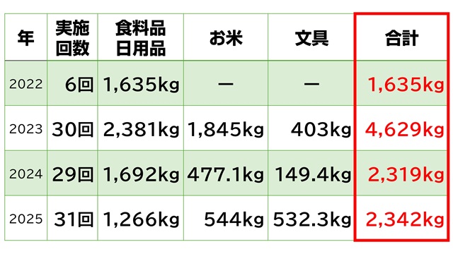 2025年2月~12月までの寄付総重量:2,342kg(小数点以下切り捨て)