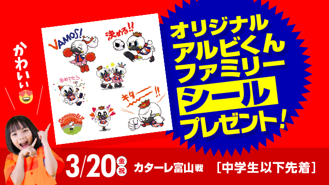 【当日は、中学生以下先着1,500名様に「オリジナルアルビくんファミリーシール」をプレゼント!】