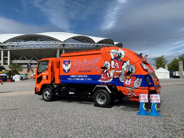 弊社の塵芥車をアルビ仕様にしてからは、町の皆さまからお声がけいただく機会も増え、クラブが地域にどれだけ愛されている存在かを日々実感しております。