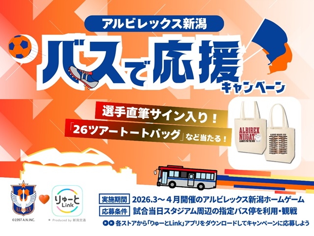 オフィシャルクラブパートナー・スマイルパートナーである新潟交通が提供するアプリ「りゅーとLink」とアルビレックス新潟のコラボキャンペーンを実施いたします。