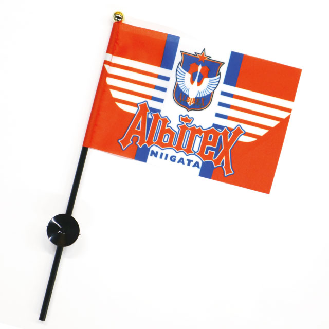 日常をオレンジに染める、吸盤付きの定番ミニフラッグ。車内やデスク、お部屋に飾るだけで簡単に応援コーナーが完成します。いつでも、どこでもアルビと共に。今日も、明日も、このフラッグを飾って熱い応援の気持ちをアピールしましょう!