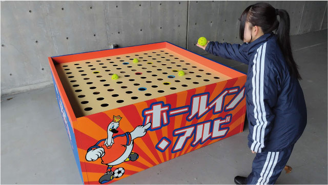 【内容】新アトラクション。ボールを投げて、入った穴の色に応じて景品をゲットできます。