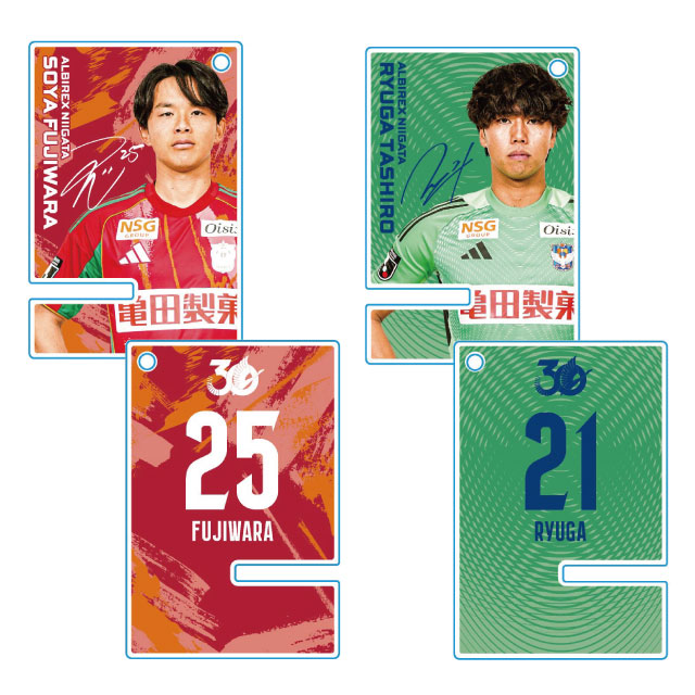 選手の迫力あるビジュアルと背番号が映える2連キーホルダー。2枚のプレートを組み立てれば、動画視聴やビデオ通話に便利なスマホスタンドに早変わりします。バッグを彩るだけでなく、ツールとしても役立つ逸品です。