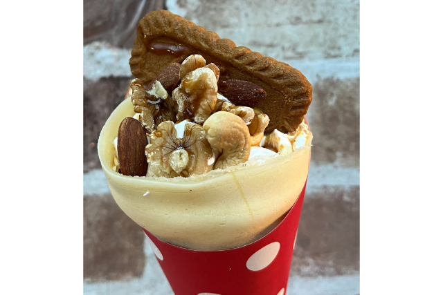 こだわりのもちもち生地に甘さ控えめのクリームをたっぷりのせたクレープです。是非ご賞味くださいませ。