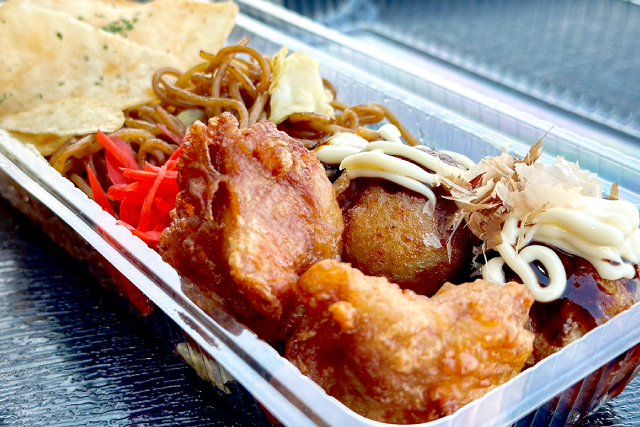 たこやき・やきそば・からあげ・チップスの贅沢な盛合せ!!迷っても迷わなくても、まずはスタジアムセットで決まり。