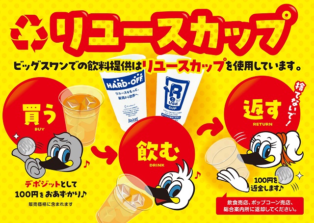 ・移し替えが必要となる一部の飲料やポップコーンについては、リユースカップをご利用いただきます。