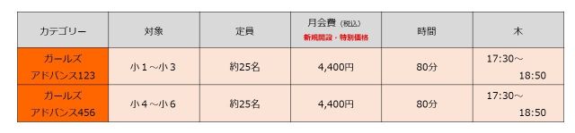 【4月】ガールズ・アドバンスクラスの開催日