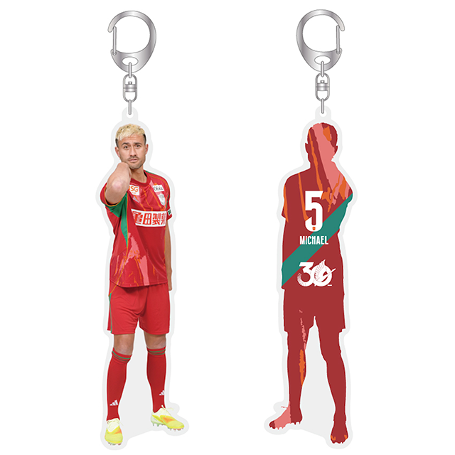 圧倒的存在感!雪椿モチーフの新ユニフォームを纏ったBIGサイズキーホルダーが登場。 躍動感あふれる姿はバッグでも目立ち、推し活を華やかに彩ります。 定番ポーズのアクスタと並べて飾れば、スタジアムの熱気が蘇る贅沢なコレクションに!