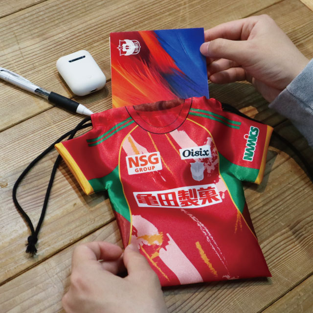 カバンの中にも、推しのユニフォームを。 見た目の可愛さ以上に、ガシガシ使える収納力が自慢のユニフォーム型巾着です。観戦グッズの整理や旅行のパッキングまで、マルチに活躍する実用派!30周年ロゴ入りの特別仕様をカバンに忍ばせ、どこへでも推しと一緒に駆け出しましょう!