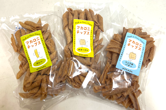 マカロニ国内製造発祥の地である新潟県加茂市で生まれたスナック菓子。噛めば噛むほどマカロニの美味さを味わうことができる硬めの食感がクセになります。お土産に!おつまみに!ぜひご賞味ください。