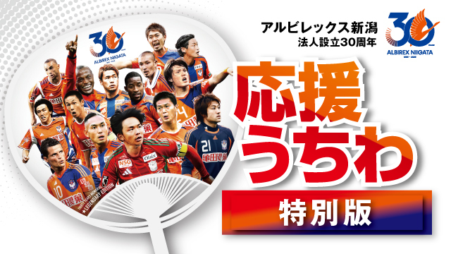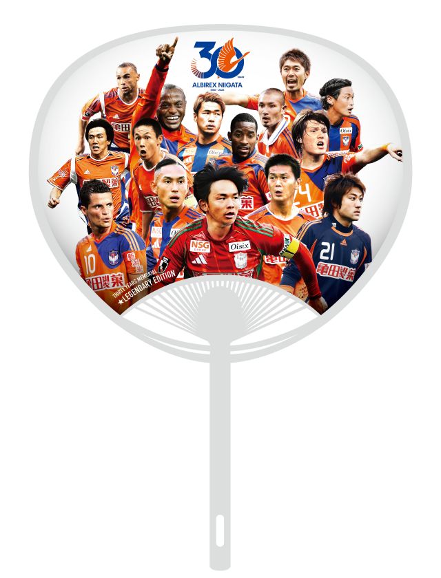 法人設立30周年を記念した今回の「応援うちわ特別版」には、新潟のために情熱を注いでくれた歴代レジェンド選手たちの姿をあしらいました。共に戦い抜いてきた選手たちと、支えてくださった皆様への感謝の想いを込めて、30年積み上げた歴史を新潟の無限大の未来へと繋いでいくべく、本企画を実施いたします。