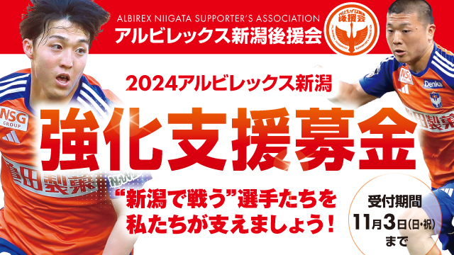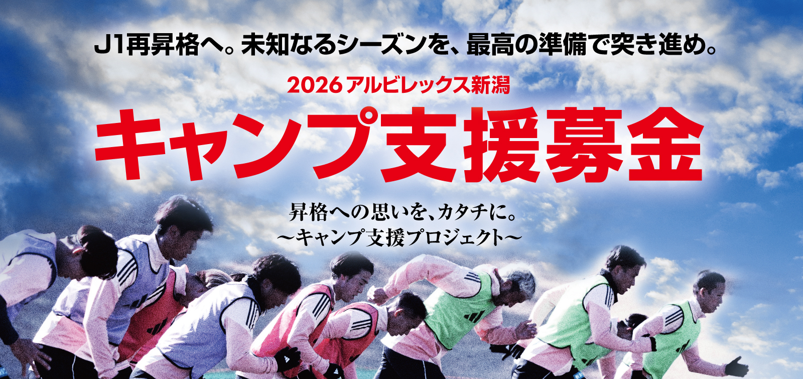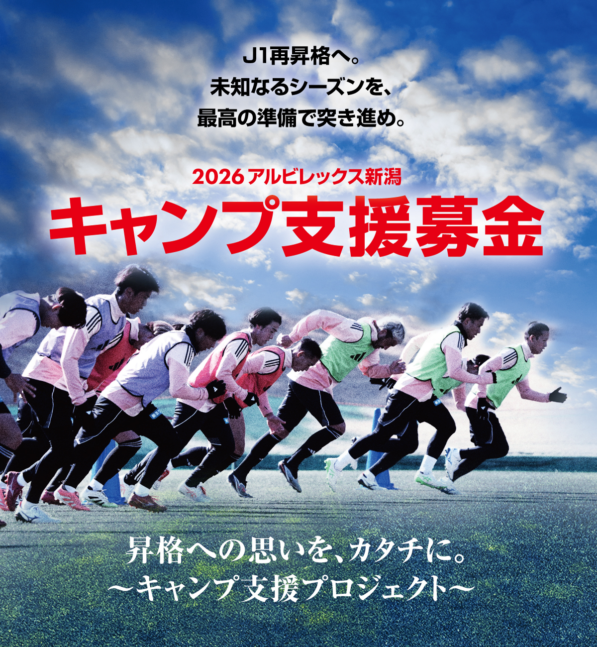2026年8月に開幕する2026-27シーズンに向けた夏季キャンプの運営費用の支援を行います。また、2026-27シーズンは2026年12月中旬~2027年2月上旬まで中断期間となる予定です。中断期間は冬季キャンプの可能性もあり、例年以上にクラブの費用負担が大きくなることが見込まれます。アルビレックス新潟が最高の準備と最高の結果にたどり着けるよう、支援してまいります。