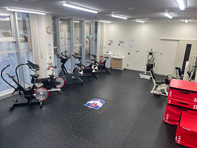 クラブハウストレーニングルームの一部改修支援等を目的に実施しました。トレーニング中の身体の負担軽減のため、トレーニングルームの床をクッション性の高い素材のシートへ張り替えいたしました。