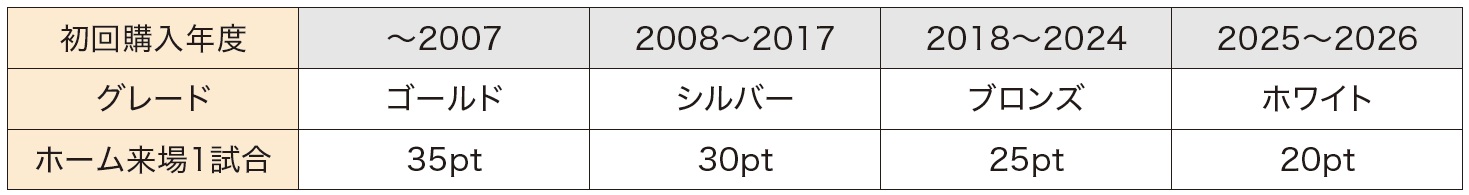 また、シーズンパスを長くご継続いただいている方ほど1試合の来場で貯まるALBポイントが多くなっています。