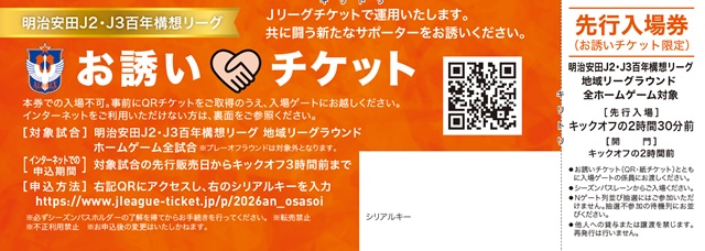 - ご希望の試合日のチケット先行販売開始日からキックオフ3時間前までに以下の専用サイトへアクセスし、お誘いチケットに記載しているシリアルキーをご入力ください。
