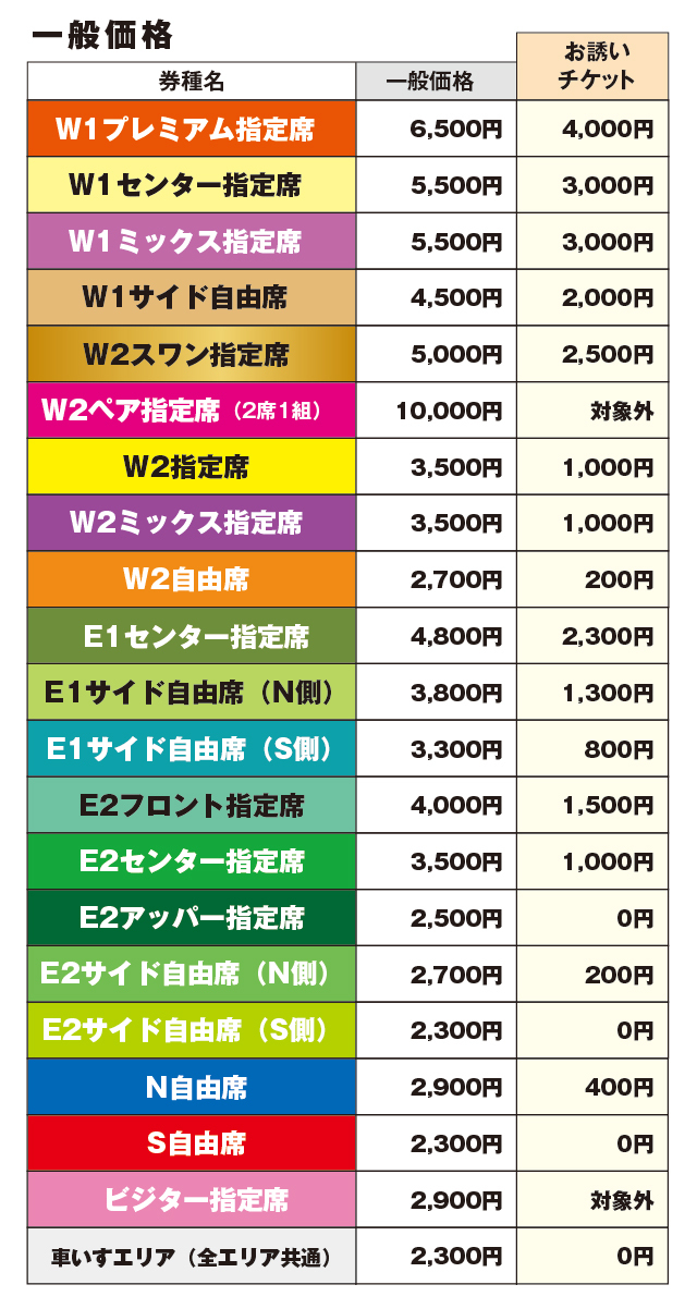 お誘いチケットを使えば、一部の席が無料になります。他の券種も2,500円引きとなります。